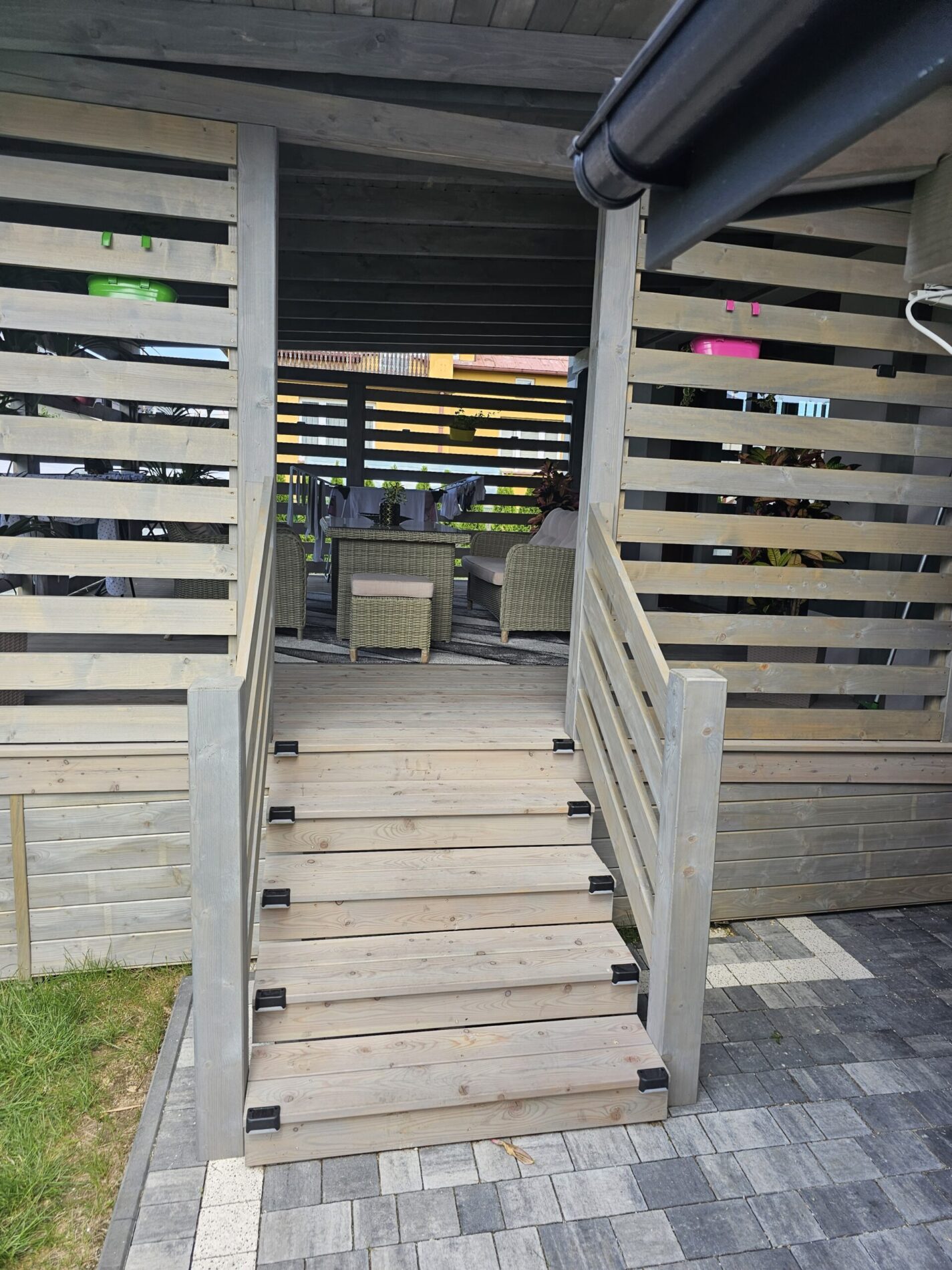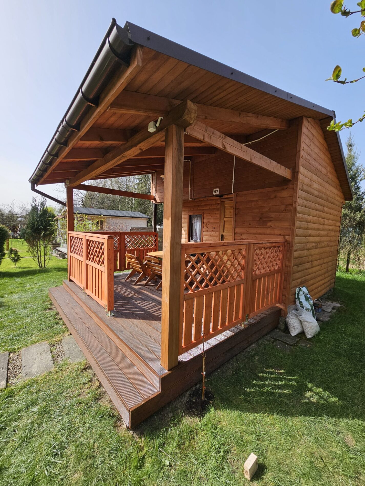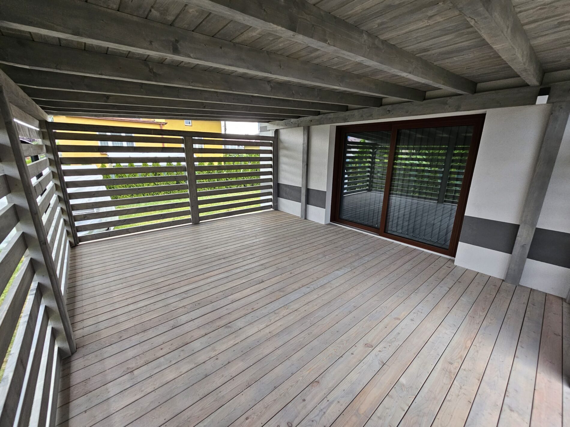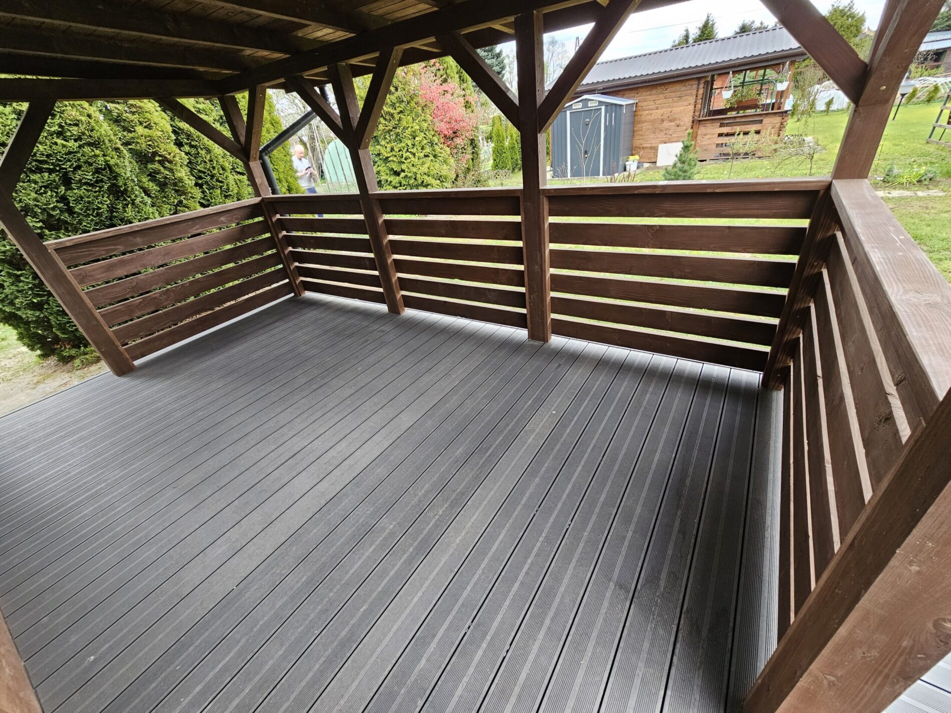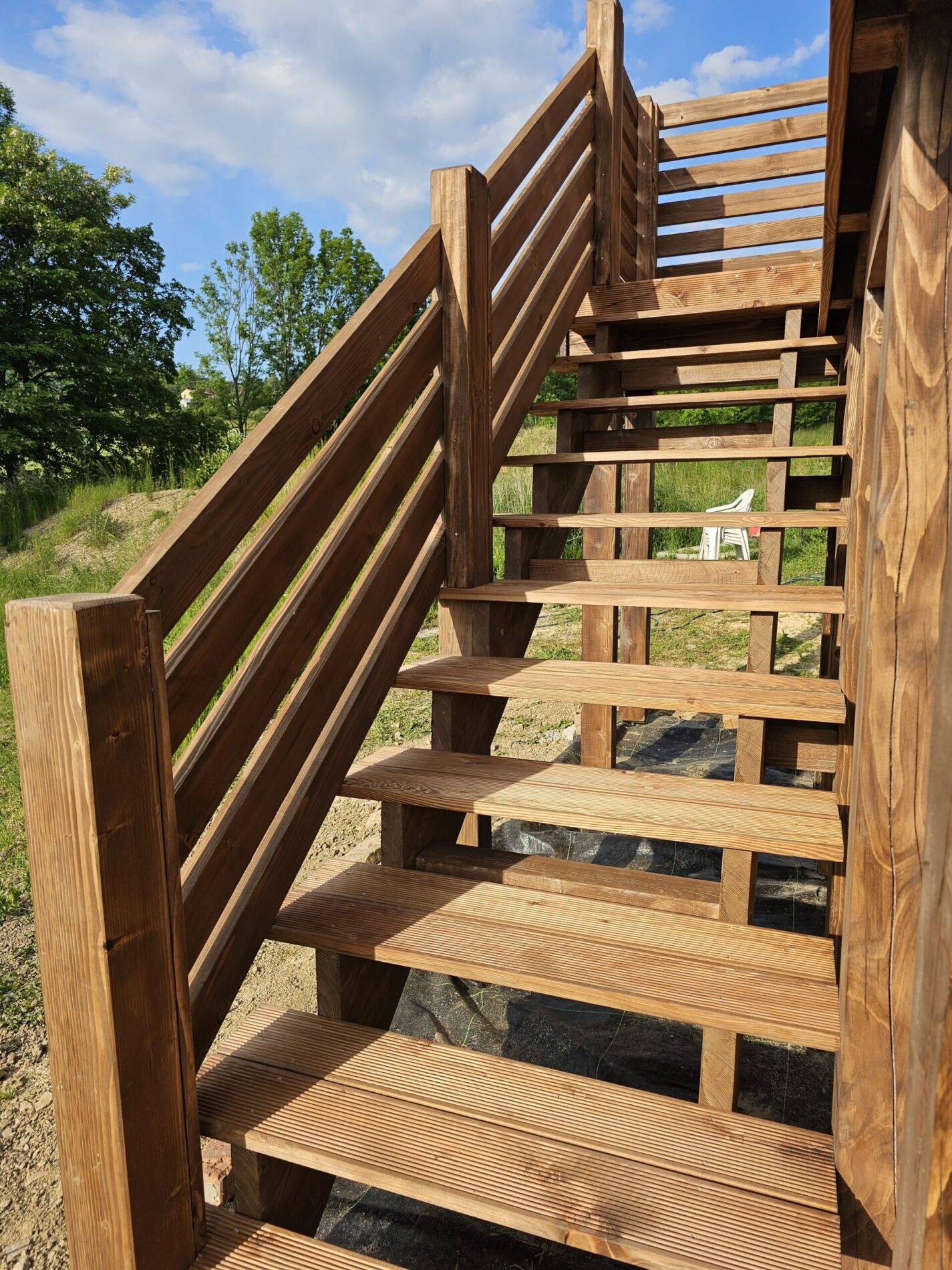 Kompleksowa realizacja tarasów drewnianych. Przygotowanie podłoża, konstrukcja nośna, układanie legarów i desek. Drewno starannie impregnowane i zabezpieczane na lata użytkowania