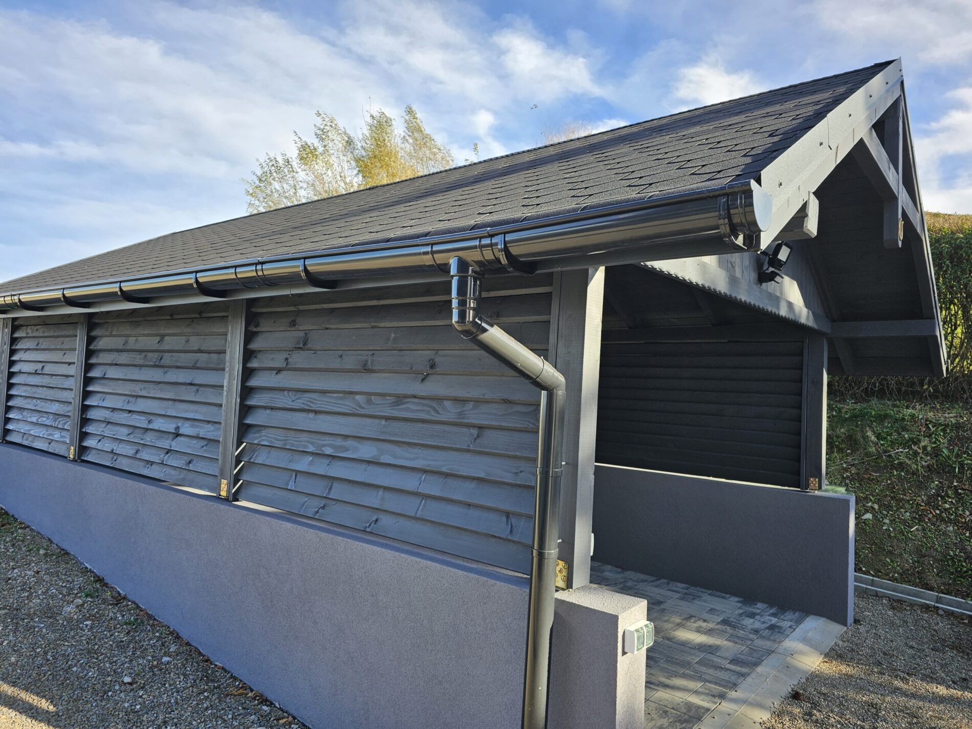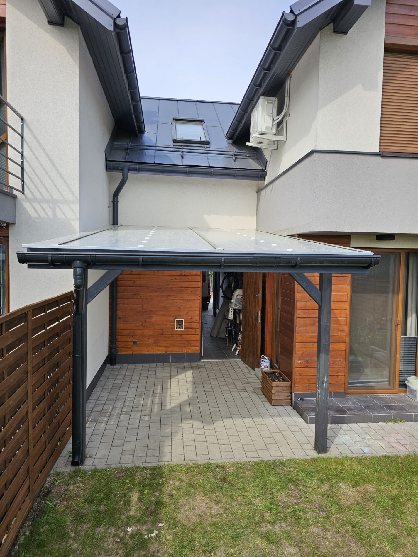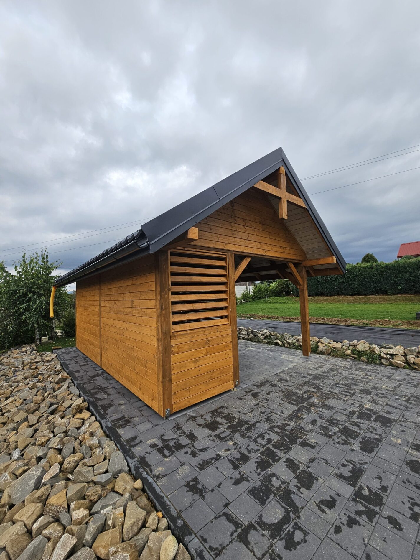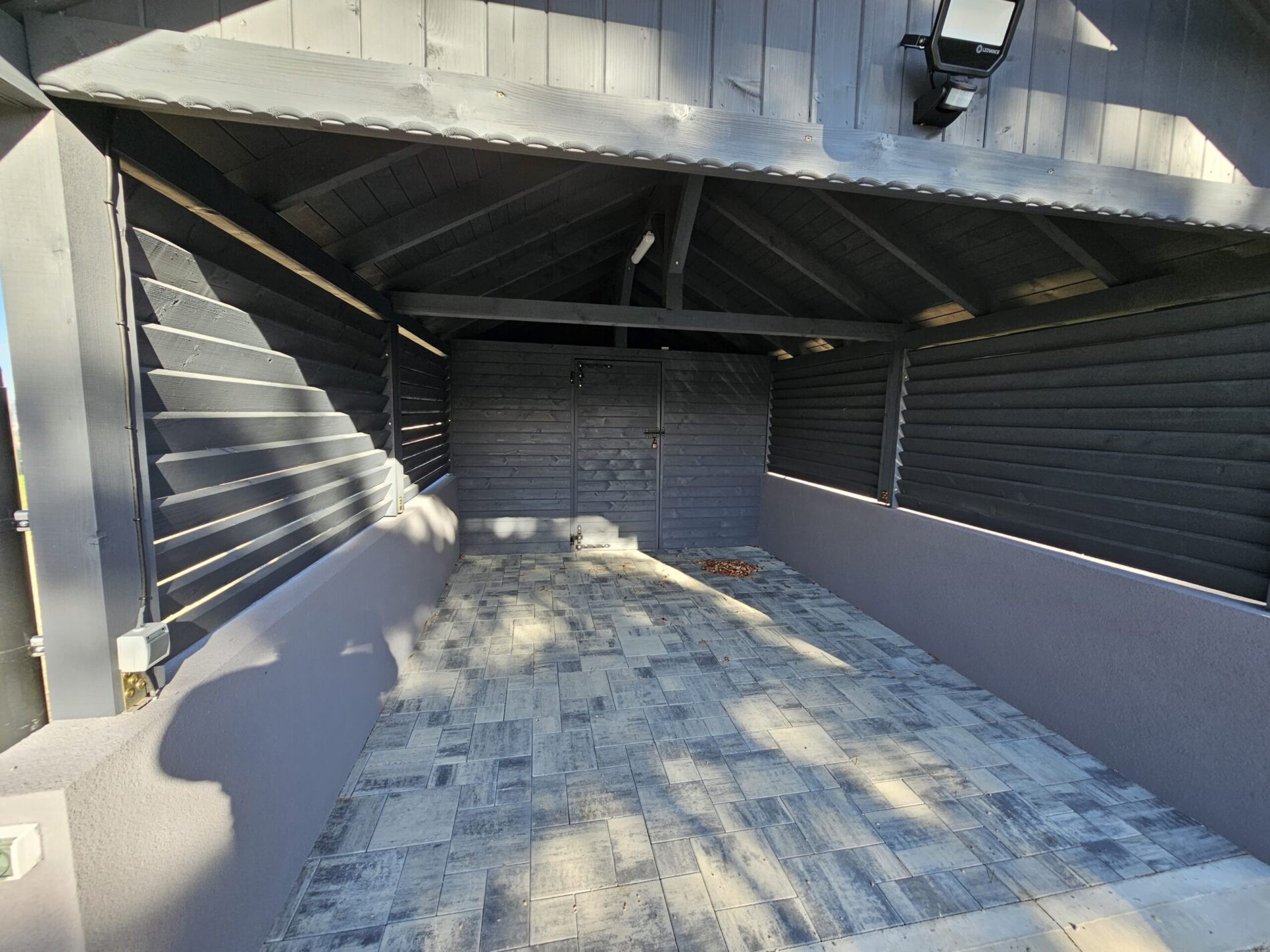 Wykonujemy garaże z płyty warstwowej na solidnej konstrukcji drewnianej. Kompleksowy montaż z instalacją bram segmentowych z automatyką oraz montażem okien i drzwi